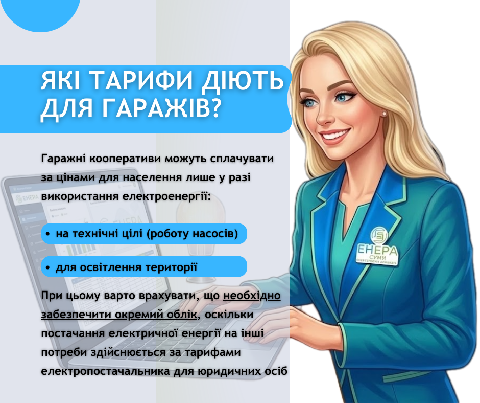 Перший випуск рубрики присвячено тарифам на електроенергію для автогаражних кооперативів. У ньому роз’яснюється, за якими цінами здійснюється оплата та які фактори впливають на їх формування. Слідкуйте за оновленнями рубрики #ЕнергоПомічниця, щоб завжди бути в курсі важливої інформації та легко орієнтуватися у питаннях електропостачання.