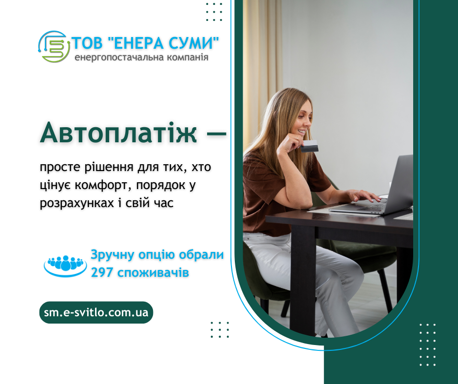 Клієнтам, яким не до вподоби стежити за оновленням нарахувань, рекомендуємо підключити автоплатіж у сервісі "E-SVITLO". Ця функція дозволяє автоматично списувати кошти з банківської картки для оплати рахунків за електроенергію.